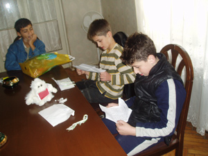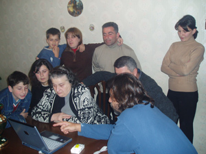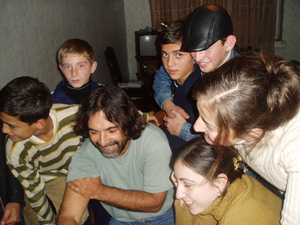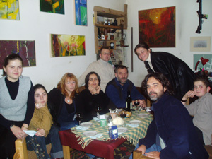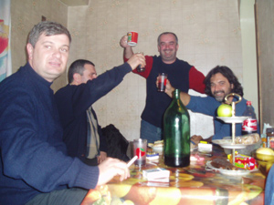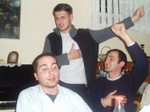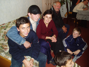 Con los amigos, la tía Natia y el abuelo