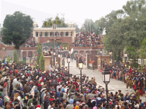 Ceremonia en la frontera, vista desde el lado indio. Al