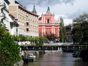 Ljubliana, capital de la República de Eslovenia. Puente sobre