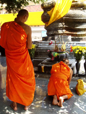 Camino de Bangkok pasamos nuestra primera noche en Songkhla a orillas del golfo de Tailandia, ciudad que cuenta con playas muy bonitas y una buena infraestructura hotelera. La mayoría de la población local es musulmana y llama la atención ver a las mujeres todas cubiertas resguardándose del sol bajo los árboles, con un calor abrasador, mientras las playas están vacías de gente. Esto lo vimos también en Malasia, en donde sólo los niños de ambos sexos, los jóvenes varones y algunos hombres adultos se bañaban en el mar al tiempo que las mujeres permanecían lejos del agua y de la arena.